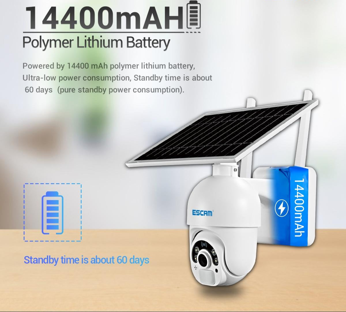 • Built-in 14400mAh rechargeable lithium battery with continuous charging from removable solar panel
