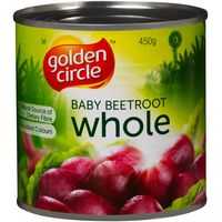 Golden Circle Baby Beets G Ingredients: Beetroot (61%), Water, Sugar, Food Acid (260), Salt, Herb & Spice Flavours.