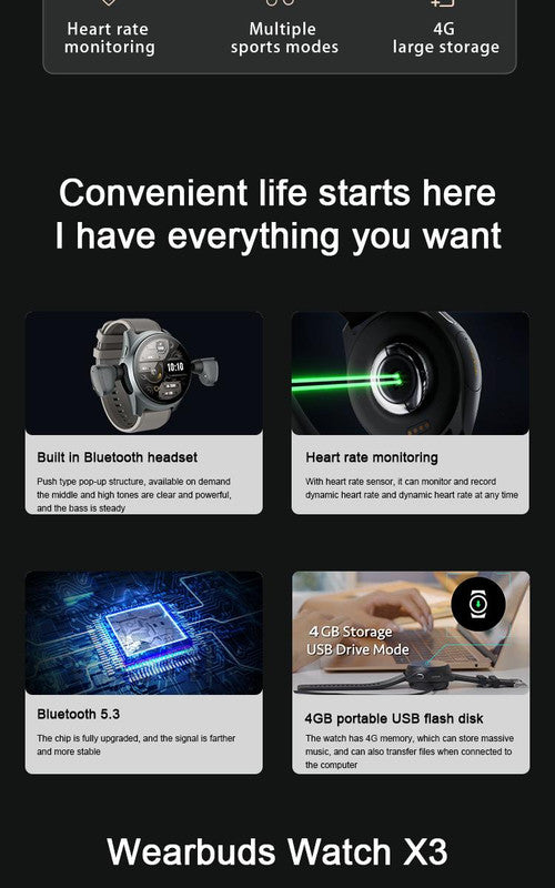 Why Its Revolutionary: ✨ Globally Patented Technology: The first true unification of watch and earphones. ⚡ Seamless Unity: One device. Zero clutter. Total freedom. Designed for Movement: IPX6 waterproof | 5-day watch battery | 6-hour earphone playtime.
