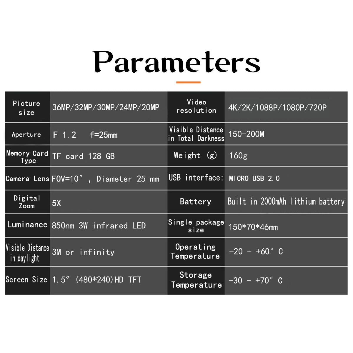 • TF card storage with maximum support of 128G (card not included)