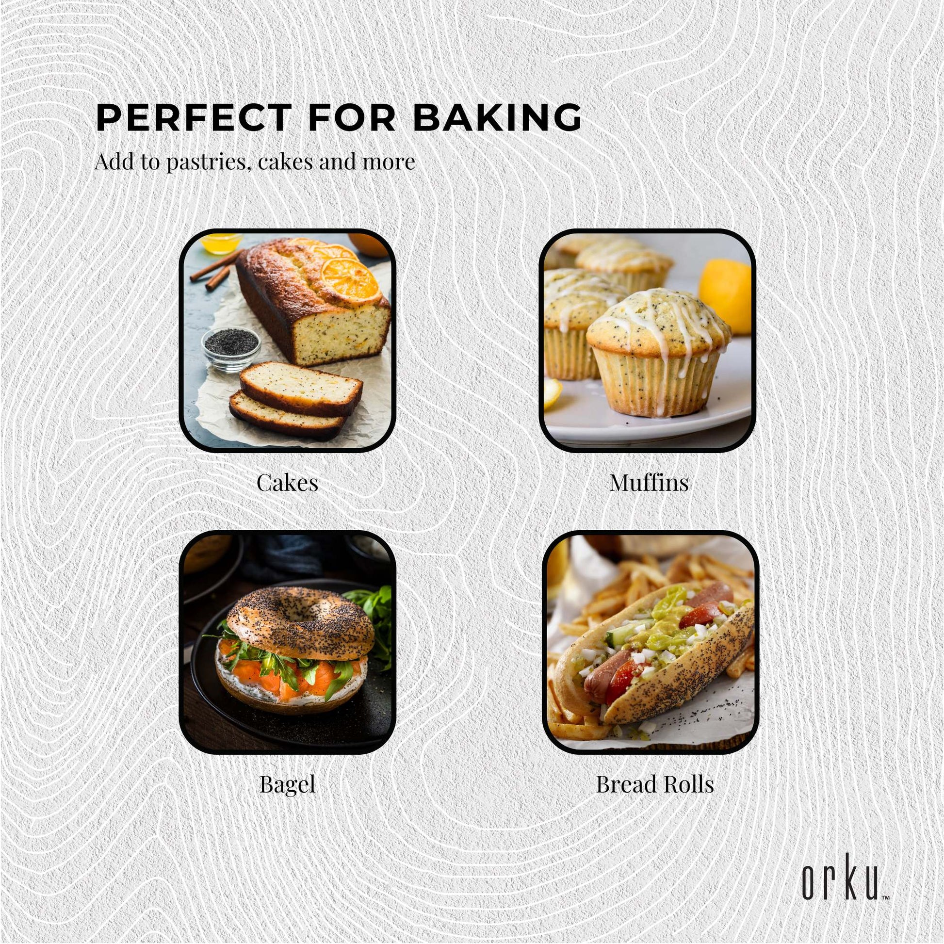 Poppy Seeds have been traditionally used in food and baking for thousands of years. It has a nutty flavour and are commonly used in pastries, breads, cakes, muffins, rolls, curries etc.