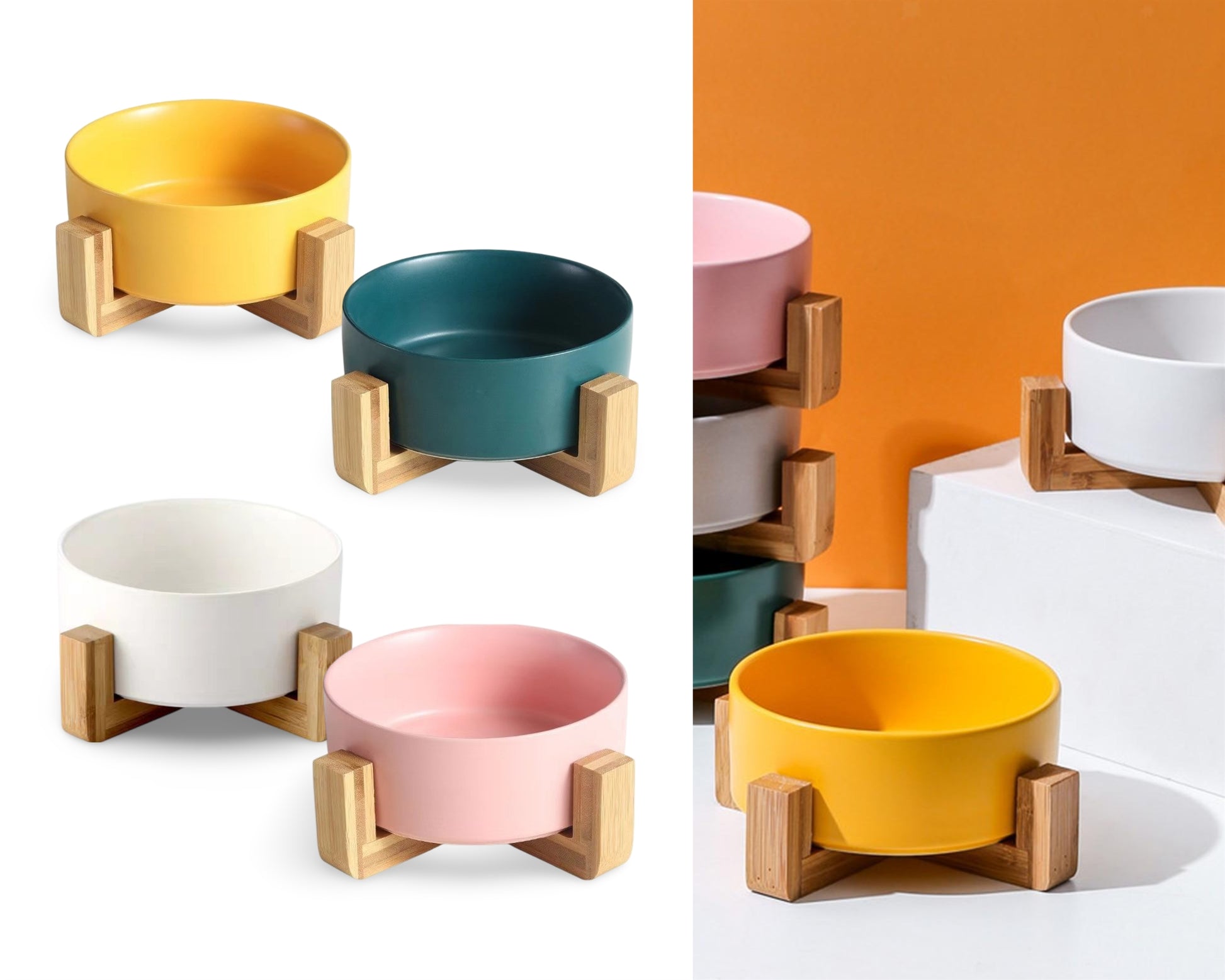 12 x Couloured Ceramic Pet Bowl W Stand 4 Assort