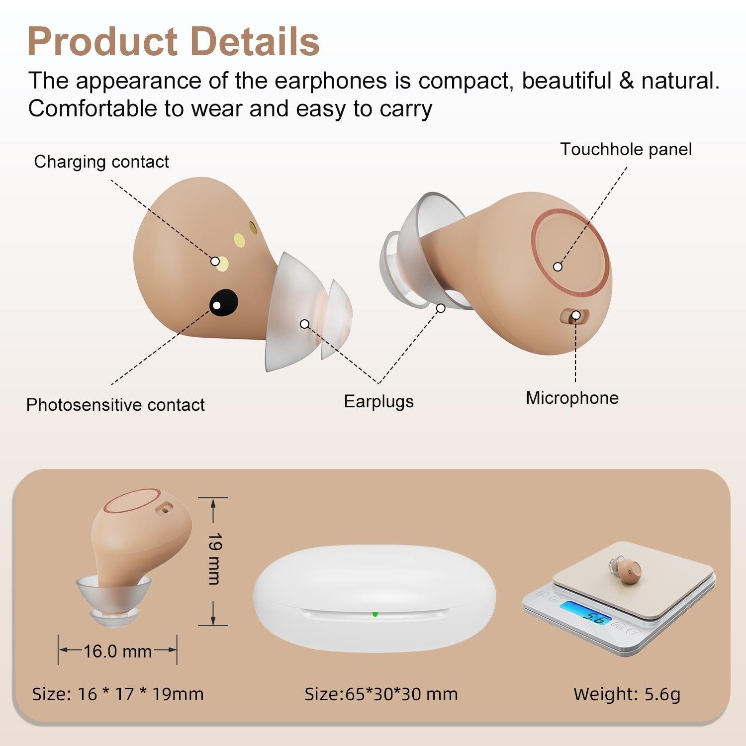 Digital In Ear Tws Hearing Aid Rechargeable & Invisible - Skin Colour