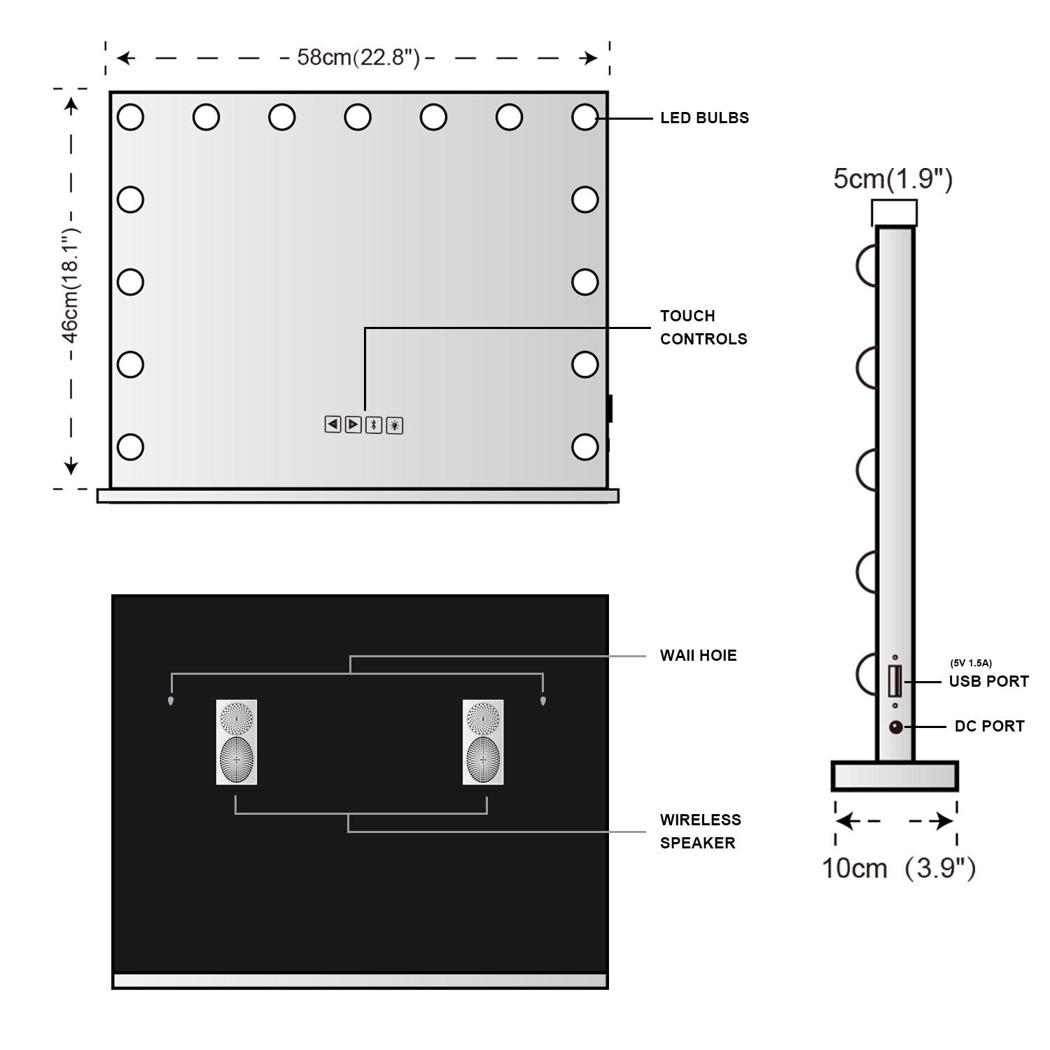- Convenient Charging Station: Stay charged and connected with the integrated USB charge port. Power up your smartphone or other devices right from the mirror as you prep, keeping your essentials within reach and fully charged.