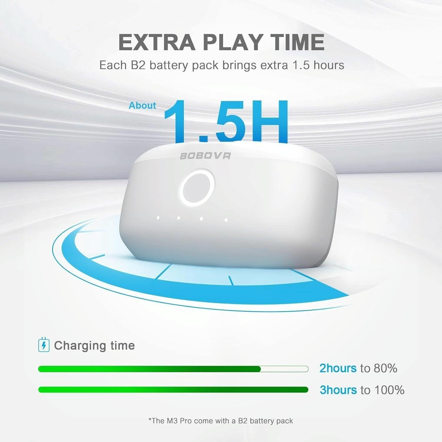 • M3 Pro is a battery-powered headband designed for extended gaming sessions on Meta Quest 3.