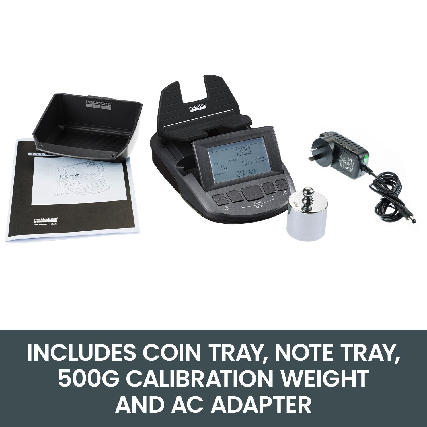 Ratiotec Digital Coin Note Money Counter Currency Scales Australian Notes Portable - Made In Germany