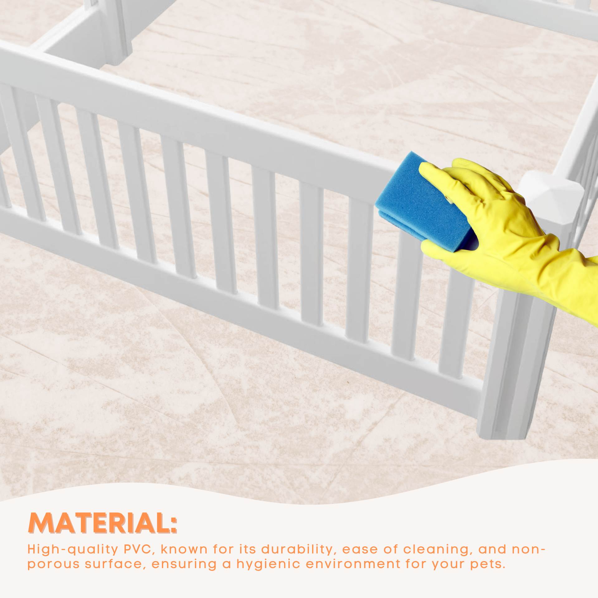 Package Includes: Modular PVC playpen panels, connectors, caps, screws, and assembly instructions.