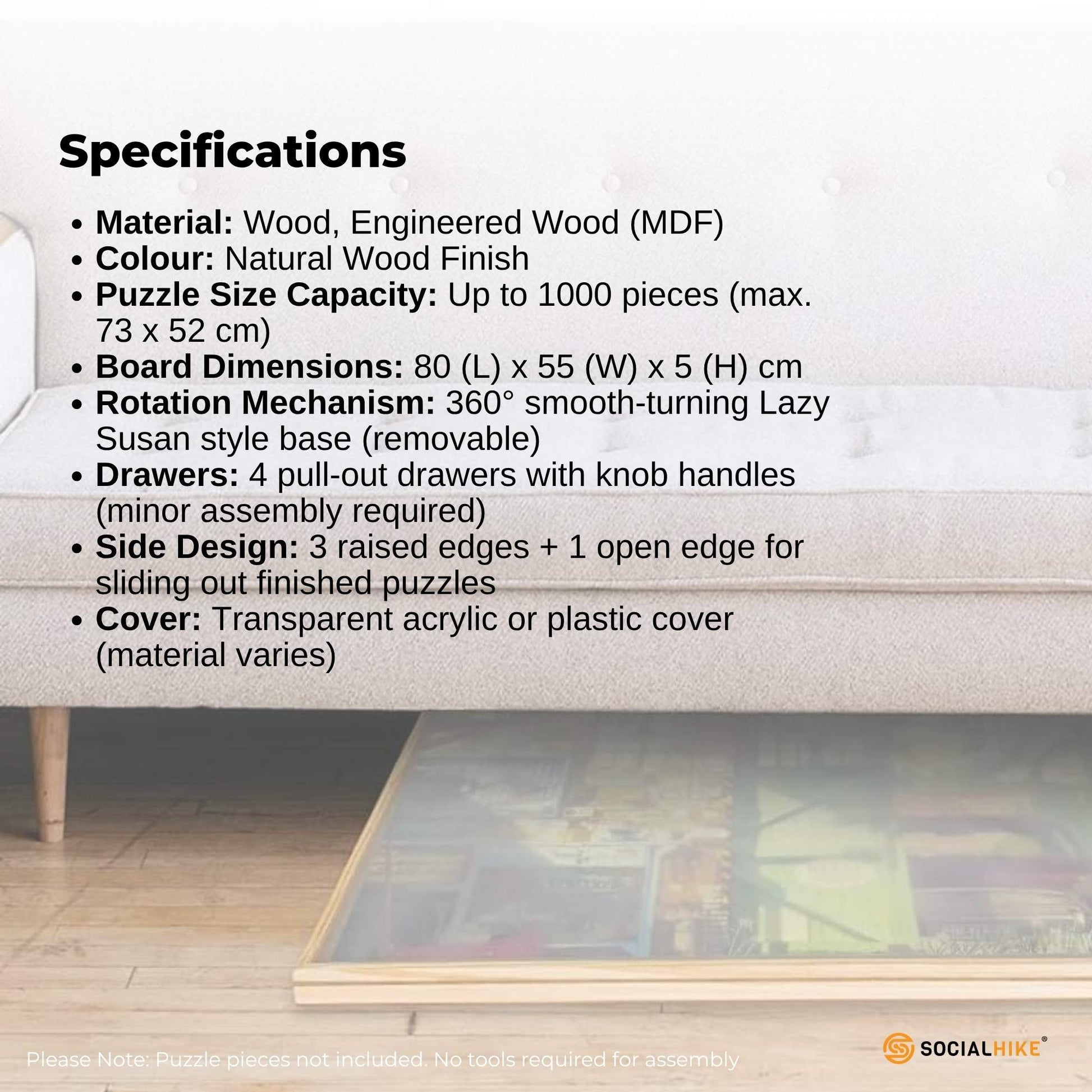 Social Hike 1000pcs Puzzle Board 4 Drawer with Cover - Wooden Rotating Tabletop