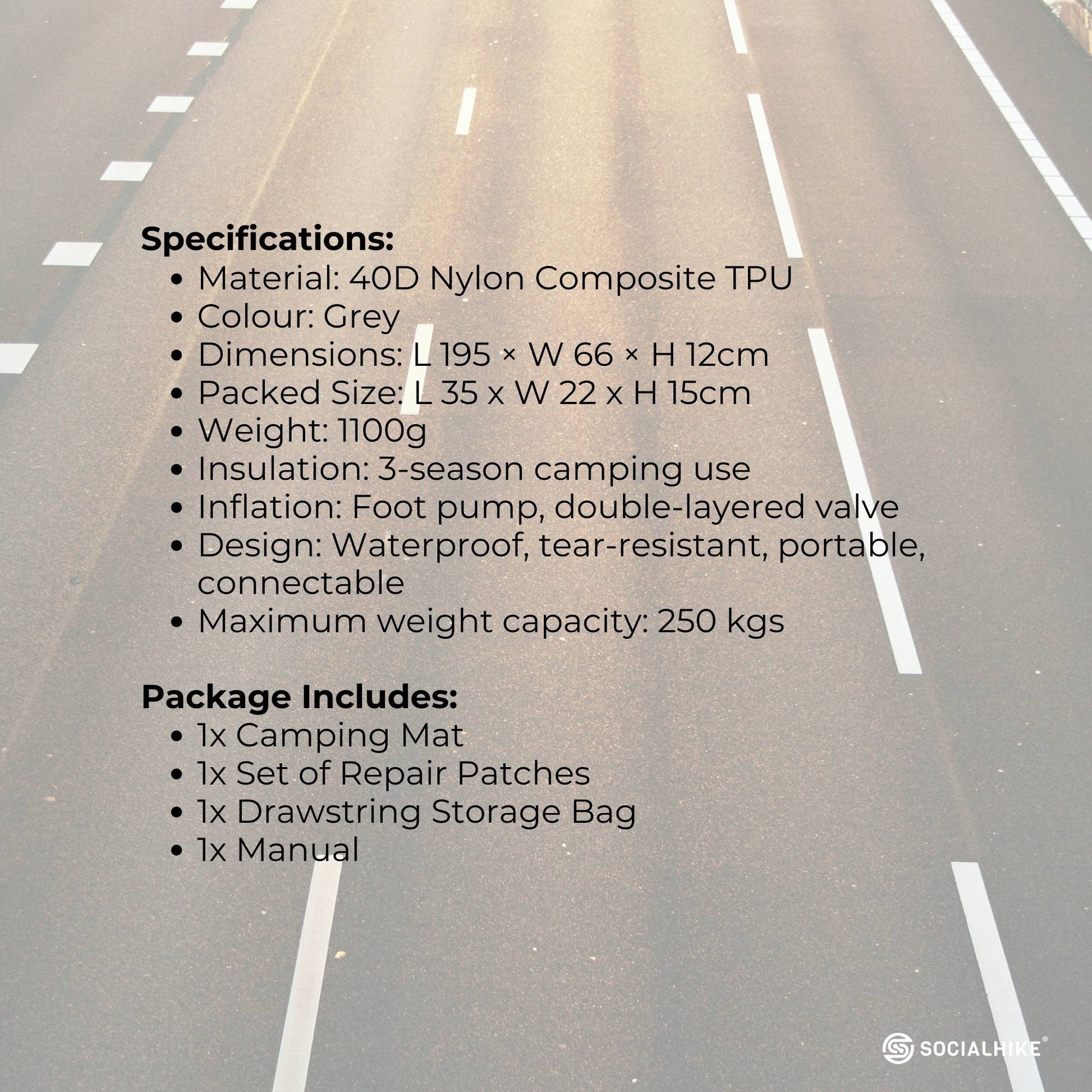 Social Hike Step-Inflating Camping Mattress makes sleeping comfortably outdoors easy! This inflatable sleeping pad is made from durable 40D nylon TPU, creating a lightweight, waterproof air mattress that inflates quickly by stepping.