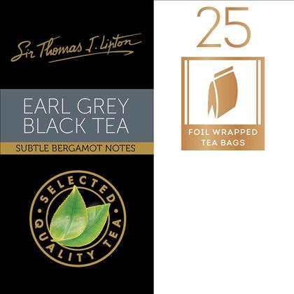 Sir Thomas J Lipton Earl Grey, Black Tea With Subtle Bergamot Notes, Wrapped Teabag, G. An Exceptional Blend Of Fine Teas, Enhanced With Subtle Bergamot Notes. The Sir Thomas Lipton Specialty Range Is Delivered In Sealed Foil Envelopes For Freshness, Superior Aroma And Moisture Protection. Con_/ Ingredients: Ingredients: Black Tea (95%), Bergamot Flavour May Contain Traces Of Soy Derivative.