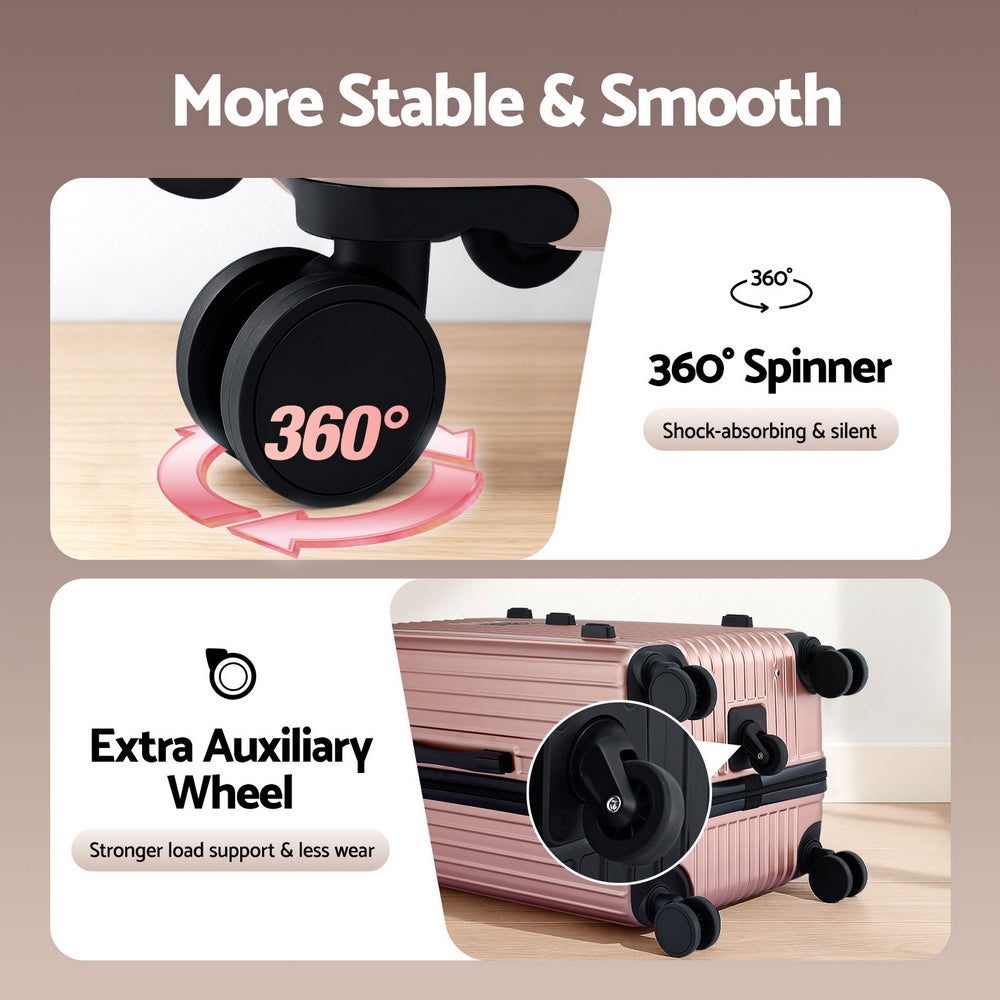 Wanderlite 28" Trunk Luggage Suitcase Travel 5 Wheels Type-C Port TSA Rose Gold