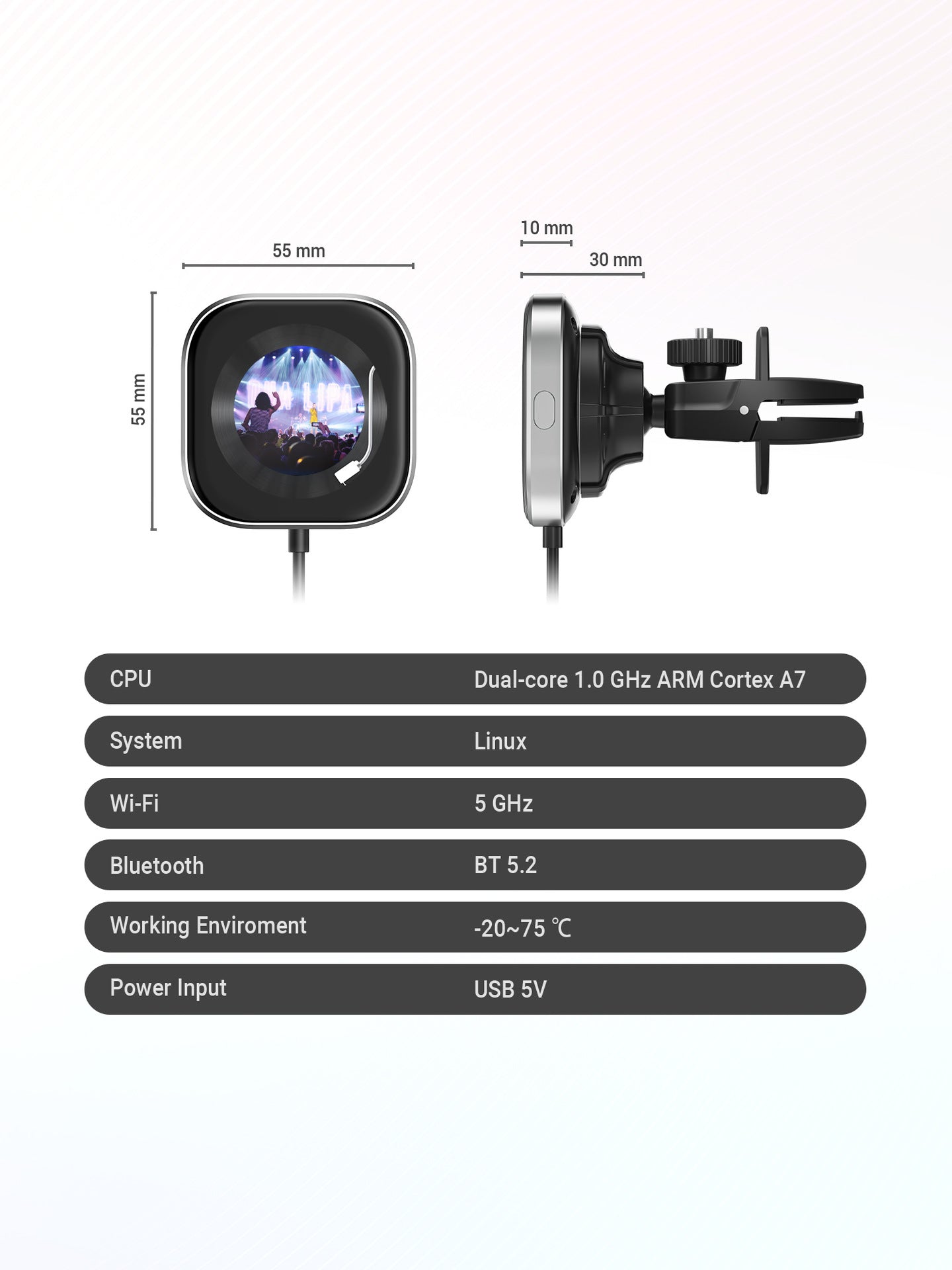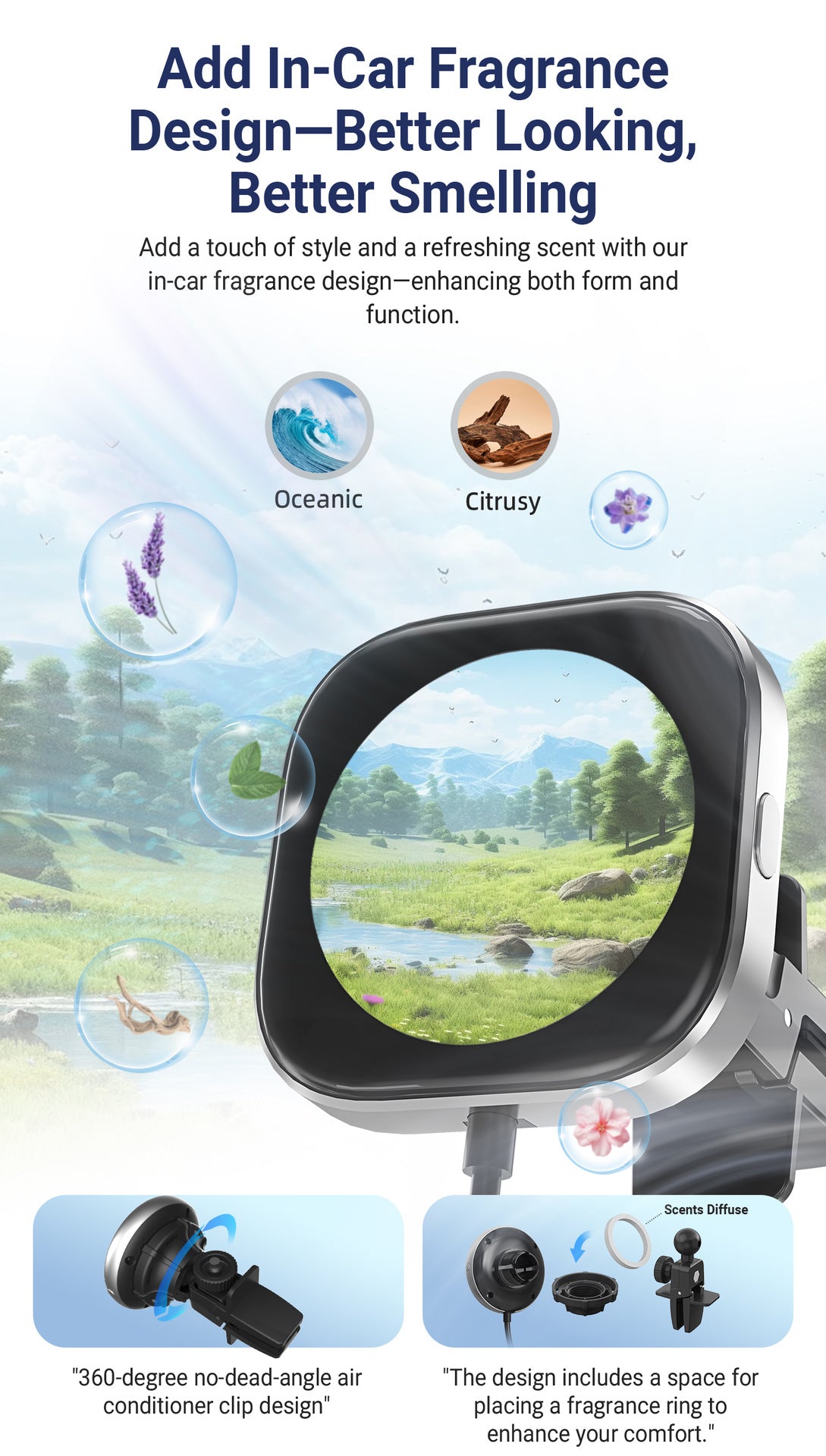 - 360-Degree Vent Clip: Securely mounts to your car's air vent with a fully adjustable, no-dead-angle clip design.